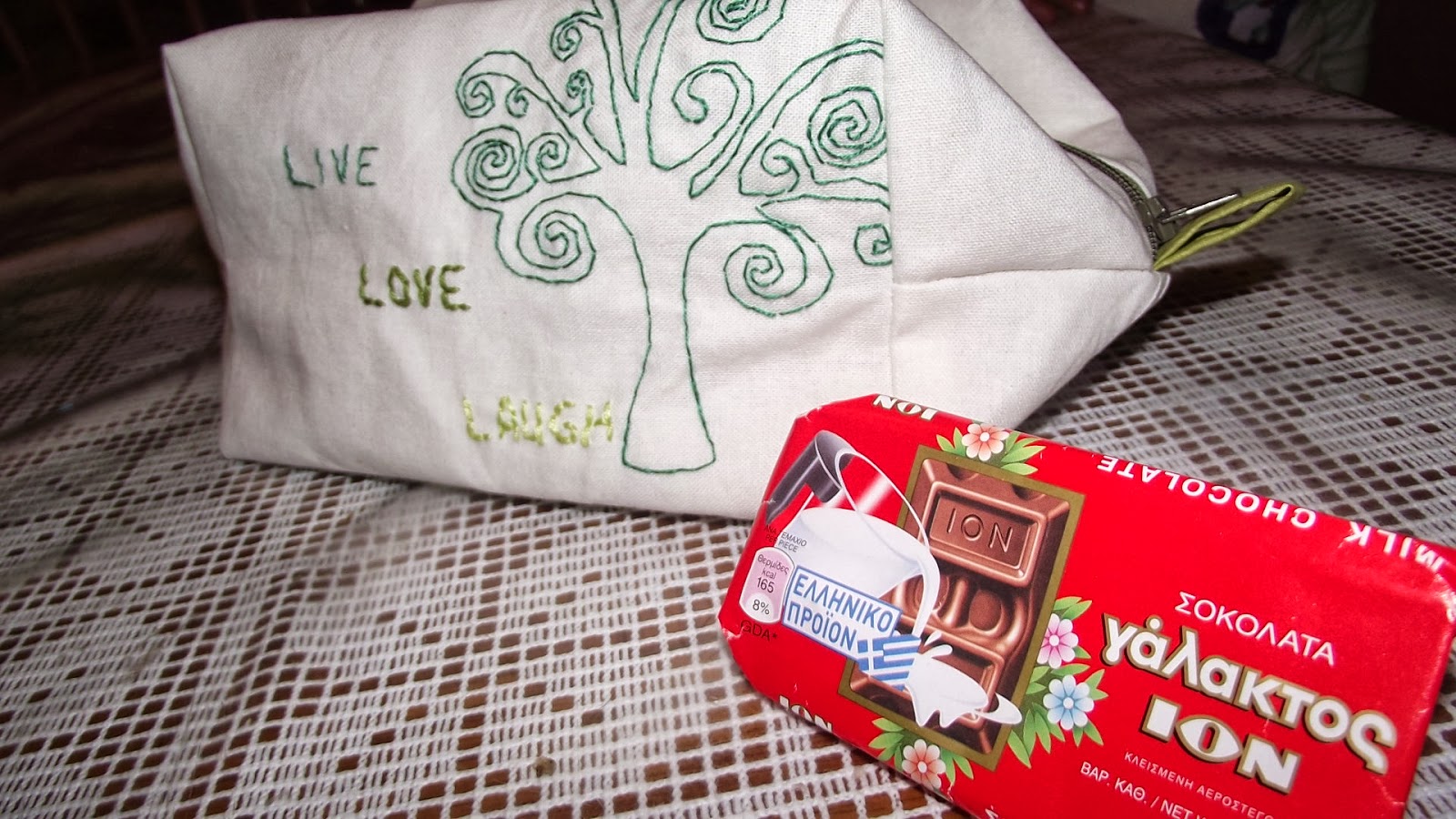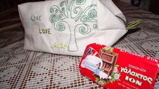 That's some Greek chocolate she sent along! Mmm....so good. I ate half of it before I got home from town, and the other half I ate today while I was sewing.