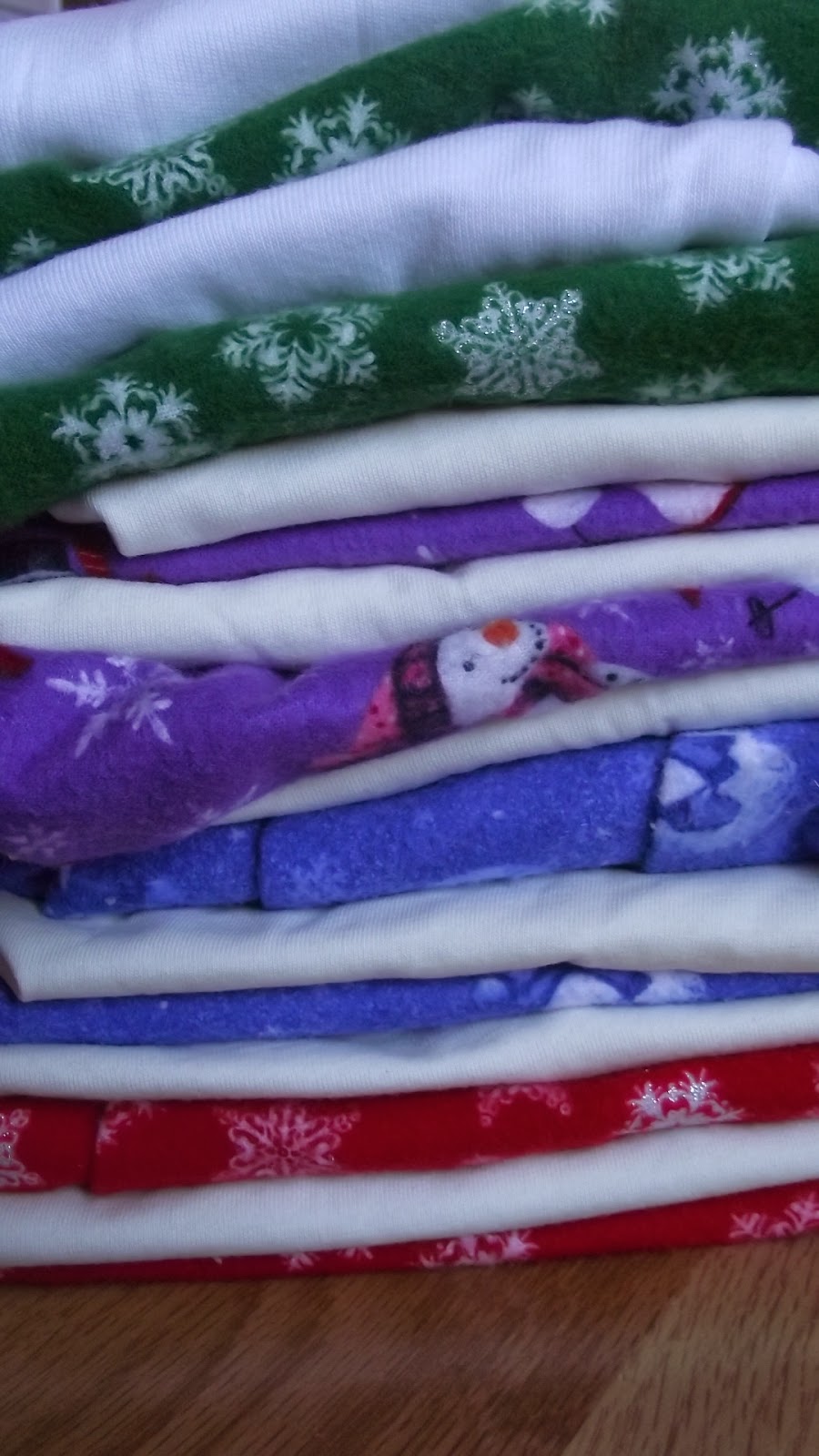 The flannel I got for free from a friend. Yards of each. It doesn't look like I've made a dent in it yet.