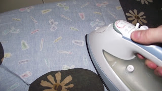 Attach the Wonder Under to the leather. Remove the paper backing and iron onto the fabric. (Make sure you always have the leather on the bottom so you are not directly ironing the leather!)