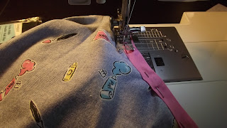 Find some co-ordinating thread and thread your sewing machine with that. (I did different colors for the top and bobbin thread.)